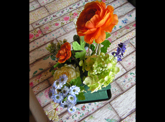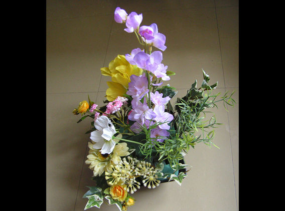 Elle utilise les fleurs fraîches ou artificielles en laissant libre cours désormais à son inspiration pour créer des compositions. Elles viennent orner des pots ou des coiffes.